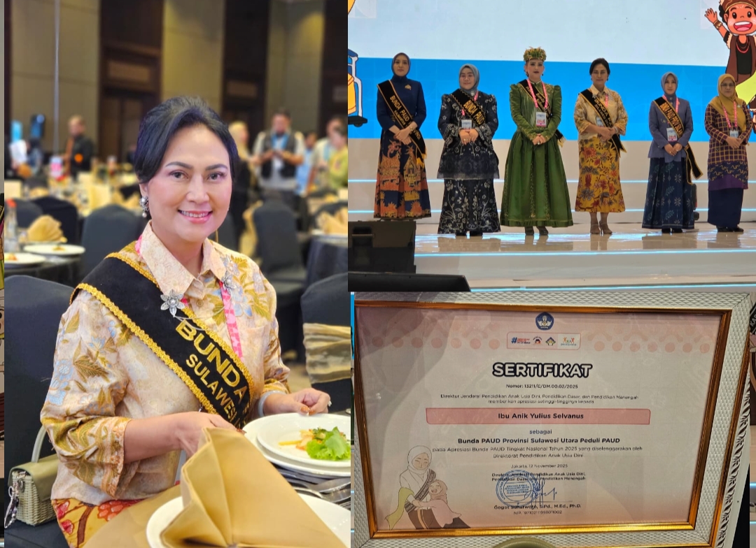 Jakarta, sulutexpres.com — Ketua Tim Penggerak PKK Provinsi Sulawesi Utara, Ny. Anik Yulius Selvanus, yang juga menjabat sebagai Bunda PAUD Provinsi Sulawesi Utara, menerima penghargaan “Bunda PAUD Sulawesi Utara Peduli PAUD” pada ajang Apresiasi Bunda PAUD Tingkat Nasional 2025.